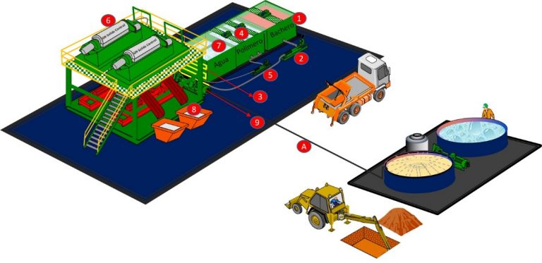 El Dewatering o Sistema de Deshidratación de lodos consiste en separar la fase líquida de la sólida del fluido de perforación mediante procedimientos físico-químicos.