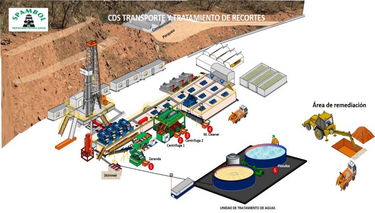 En caso de solidos perforados con lodo base aceite (OBM), estos recibirán un tratamiento especial, se requiere la construcción de fosas para almacenamiento.